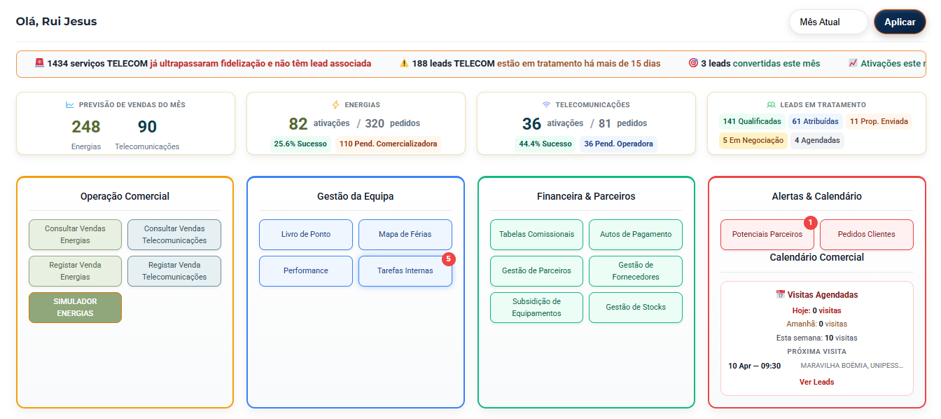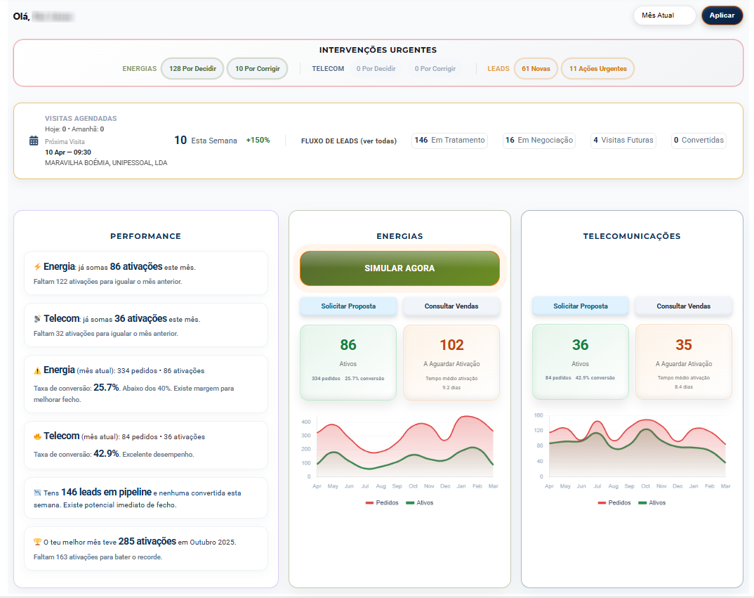 Enquanto isso, mantém visibilidade total sobre vendas, equipas e performance.