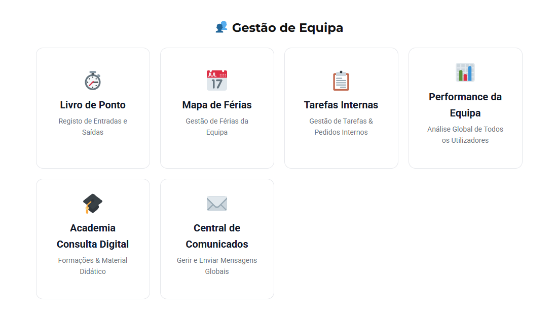 Desde a atividade diária até à formação, tudo está centralizado numa única plataforma.